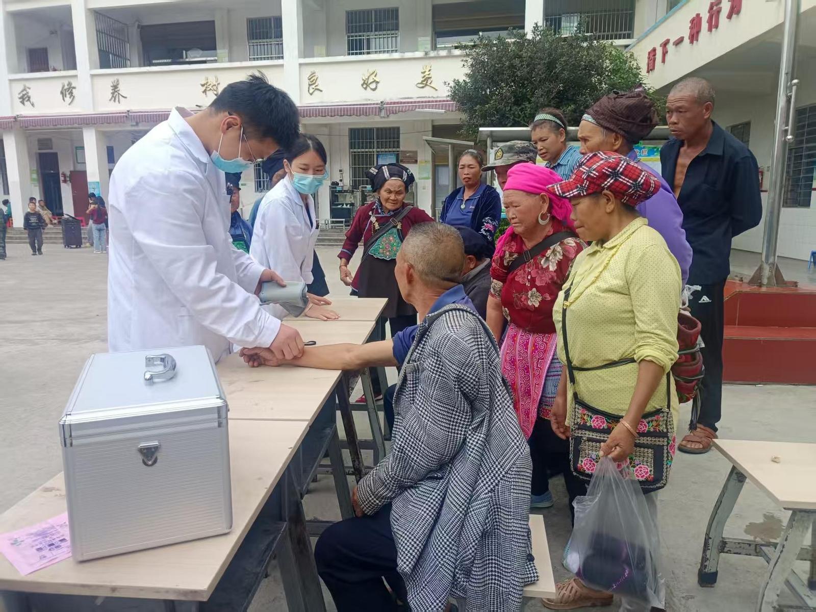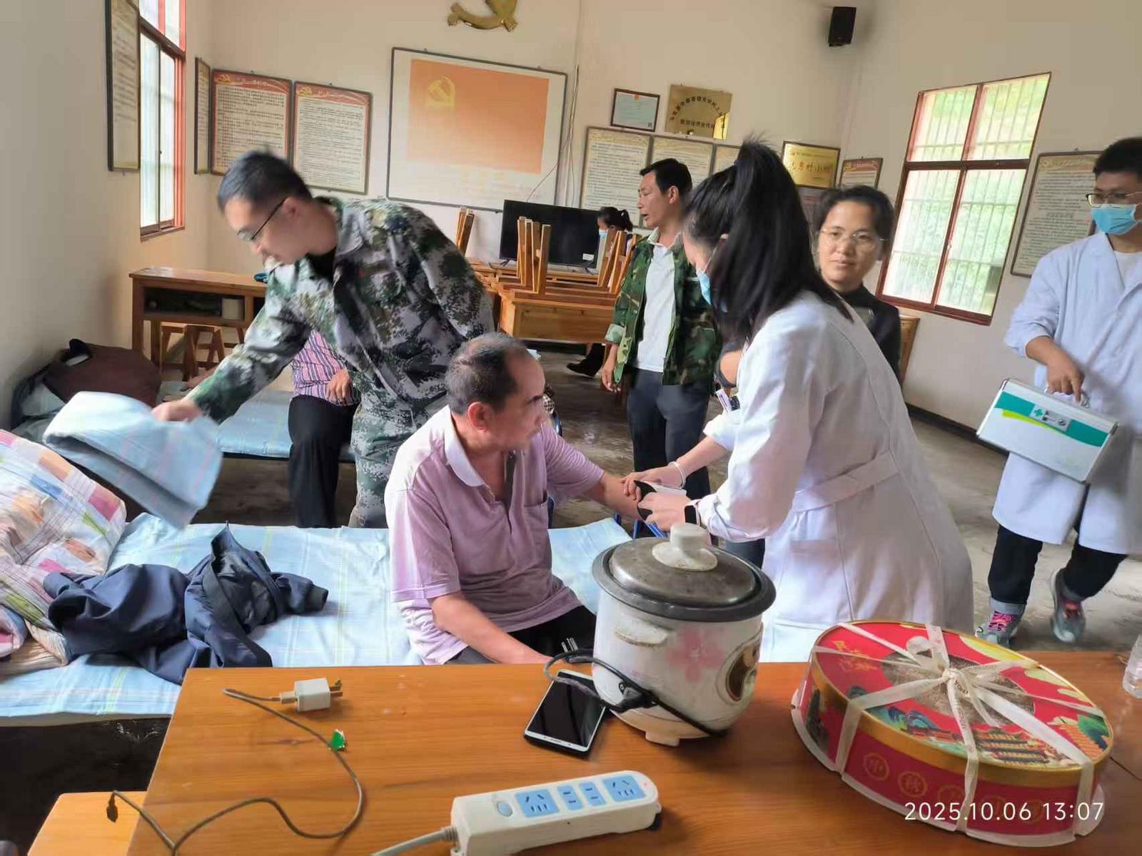 “健康领航”护民安,“温情相伴”暖安置。为筑牢群众健康防线,将关怀精准送达,消除汛期带来的疫病风险,秉持“行胜于言、实干为民”的理念,夹寒箐迅速行动。依托安置点人员密集的情况,围绕慢性病预防等内容积极开展健康知识宣讲,用通俗易懂的语言普及卫生常识,提升群众健康素养;对安置点进行全方位环境消杀,严防细菌滋生,杜绝“因聚致疫”风险;对转移群众及特殊人群进行量血压、测血糖等身体检查,有效防止因台风导致的病情发生。截至目前,已为3个村委会进行了卫生消杀,60余名群众检查了身体健康,惠及群众500余名。