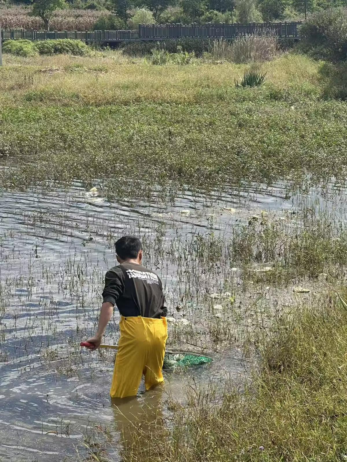 此次行动重点清理了水库周边的垃圾、漂浮物及杂草,共清理水面8平方公里。工作人员采用人工作业方式,对岸边堆积的生活垃圾进行集中清运,利用船只打捞清理水面漂浮物,并对水库副坝周边的杂草进行了铲除。