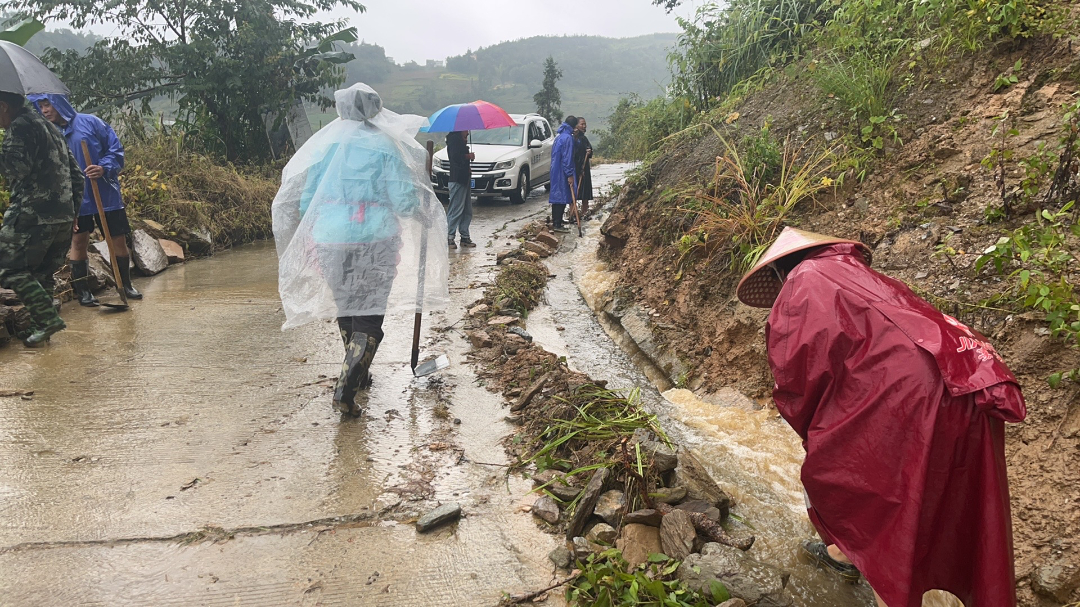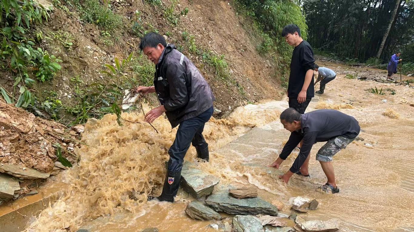 在应对前期“桦加沙”“博罗依”台风工作中,金厂镇金厂村委会下田房村小组组长田安情冲锋在前,组织20余名青壮村民组成“抗台突击队”,扛起铁锹、拿起锄头冲向排水沟和边坡路段。在雨中,雨水顺着他的衣领往下淌,裤脚沾满泥浆,全身早已湿透,但他始终坚守一线,一边指挥村民分段疏通沟渠,一边查看边坡裂缝,“排水沟通了,路保住了,房子就安全!”他的喊声在风雨中格外清晰。