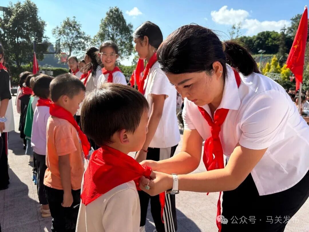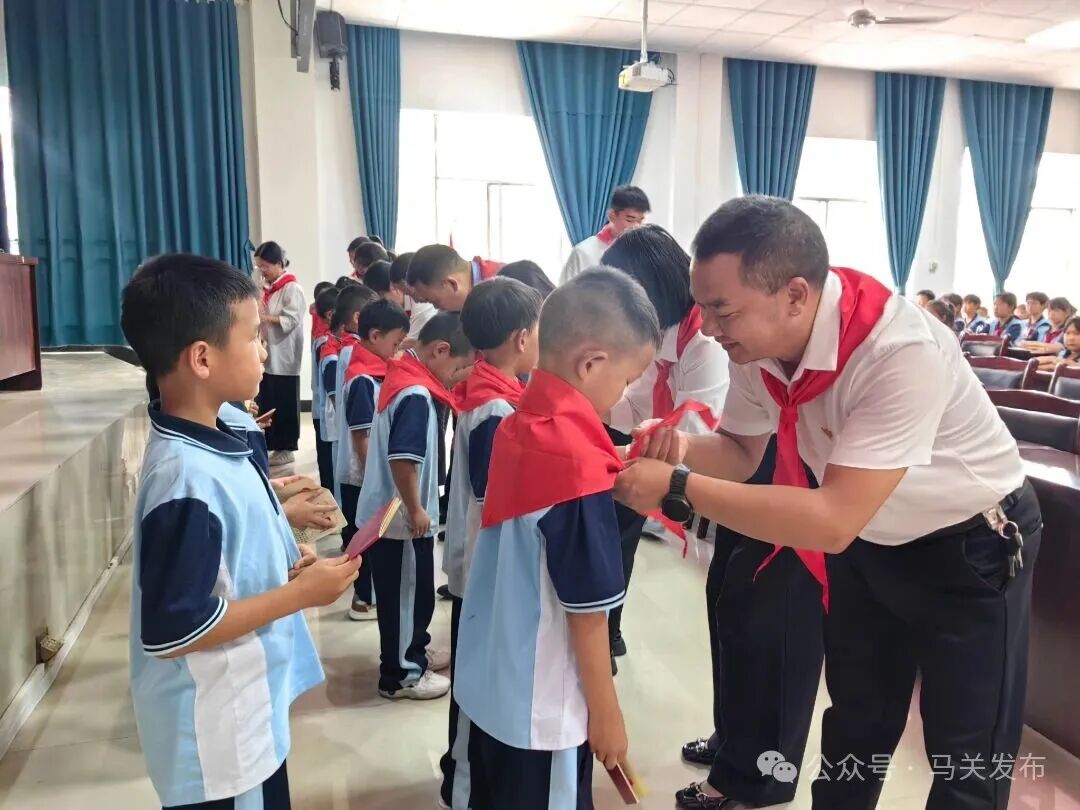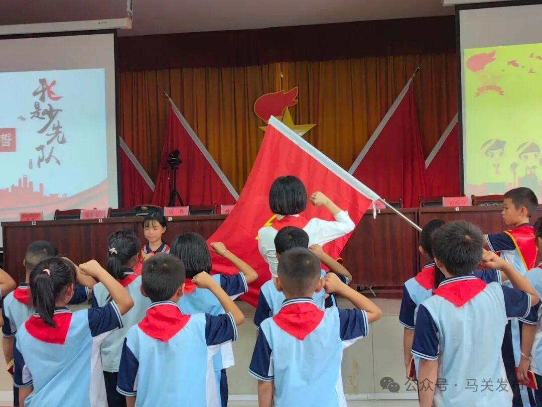 仪式依次进行了唱队歌、宣布新队员名单、授予队员标志……整个仪式庄重而热烈,新队员们佩戴上鲜艳的红领巾,自豪地加入少先队大家庭,深刻体会到光荣与责任。同时,活动也激励全体队员增强荣誉感与使命感,立志成长为担当民族复兴大任的时代新人。