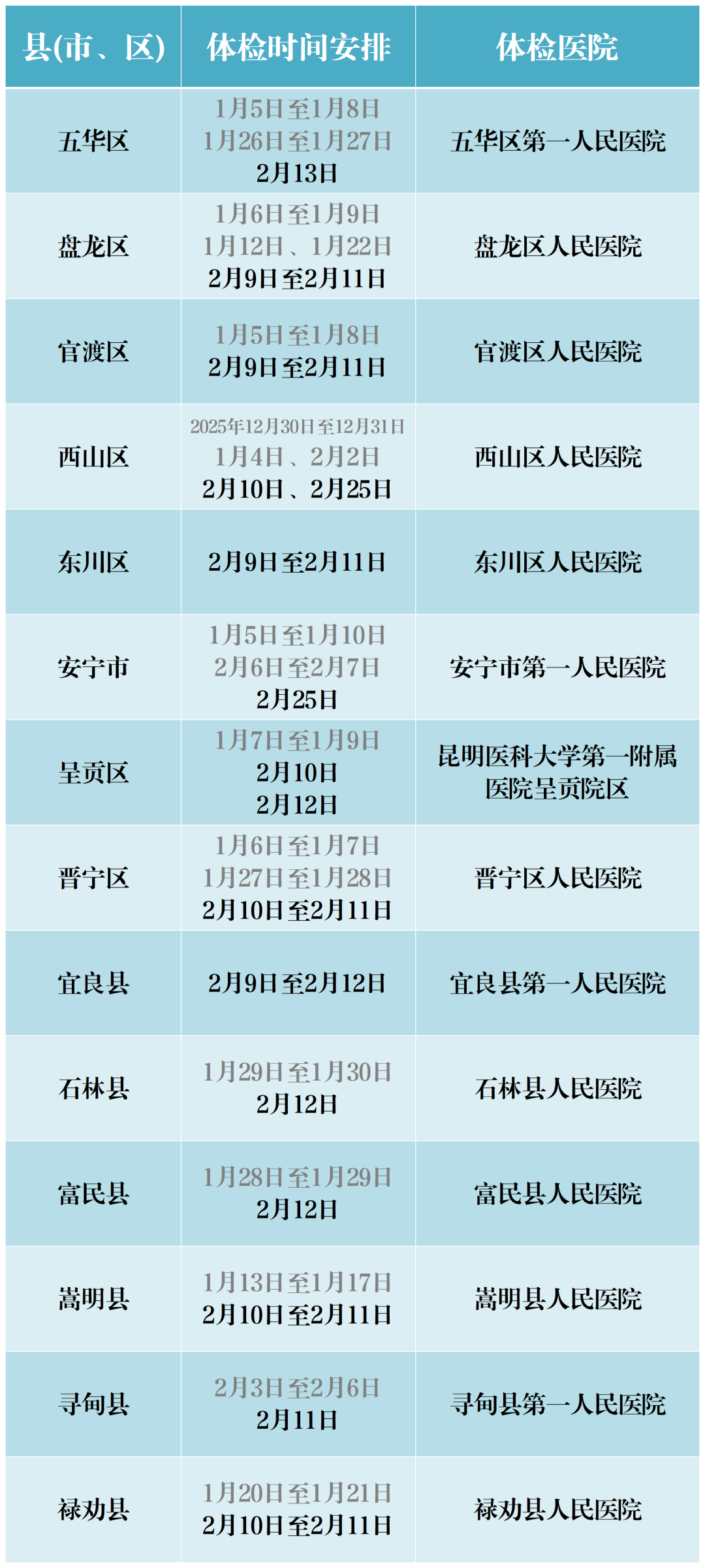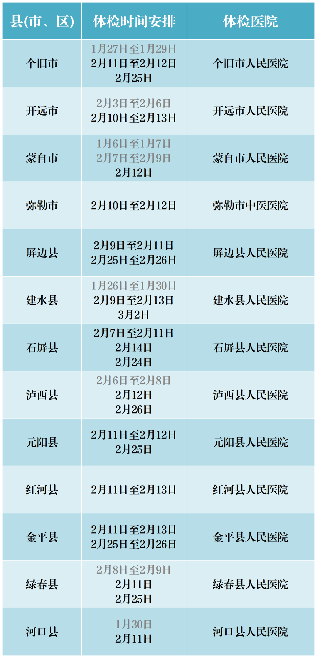 为避免错过体检安排